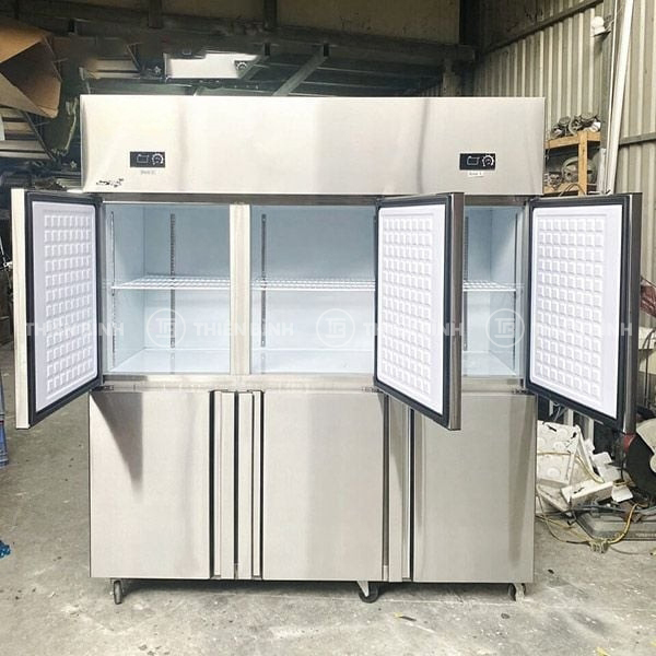 Tủ có dung tích lên đến 1300 lít, phù hợp cho các bếp ăn công nghiệp hoặc nhà hàng có nhu cầu bảo quản thực phẩm lớn.