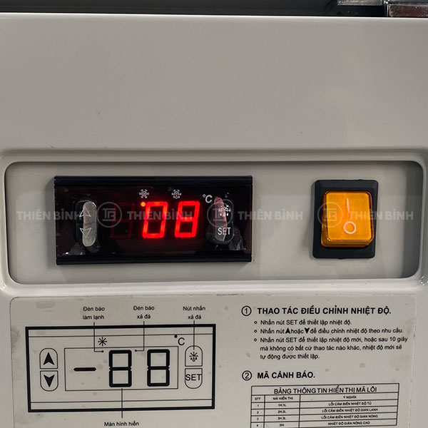- Bộ điều khiển điện tử hiện đại cùng màn hình LED hiển thị nhiệt độ rõ nét giúp người dùng dễ dàng cài đặt, theo dõi và duy trì nhiệt độ chuẩn, hỗ trợ tốt cho việc bảo quản thực phẩm lâu dài.