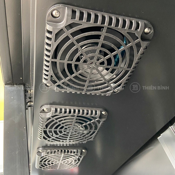 - Ba quạt dàn lạnh hoạt động đồng thời giúp phân bố hơi lạnh đều khắp khoang tủ, đảm bảo mọi vị trí đều đạt mức nhiệt ổn định.