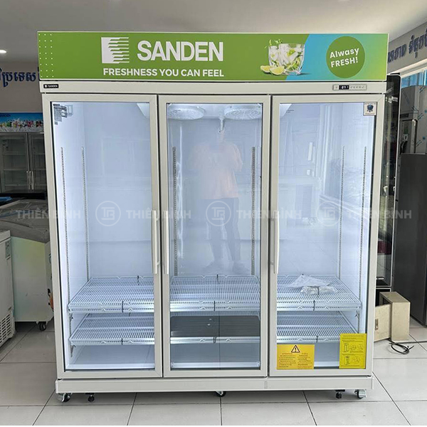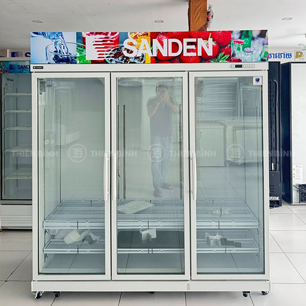 Hình ảnh thực tế của tủ mát 3 cánh kính Sanden SPM-1800C