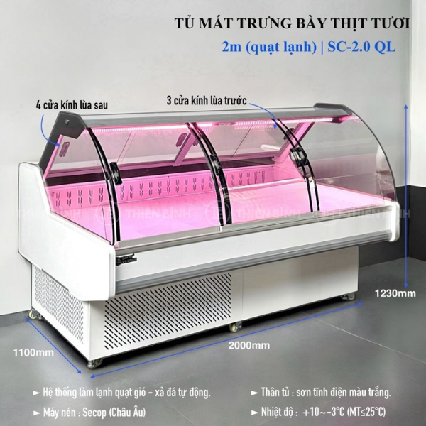 Đặc điểm nổi bật của tủ mát trưng bày thịt 2m Snow Village SC-2.0 QL (Quạt lạnh)