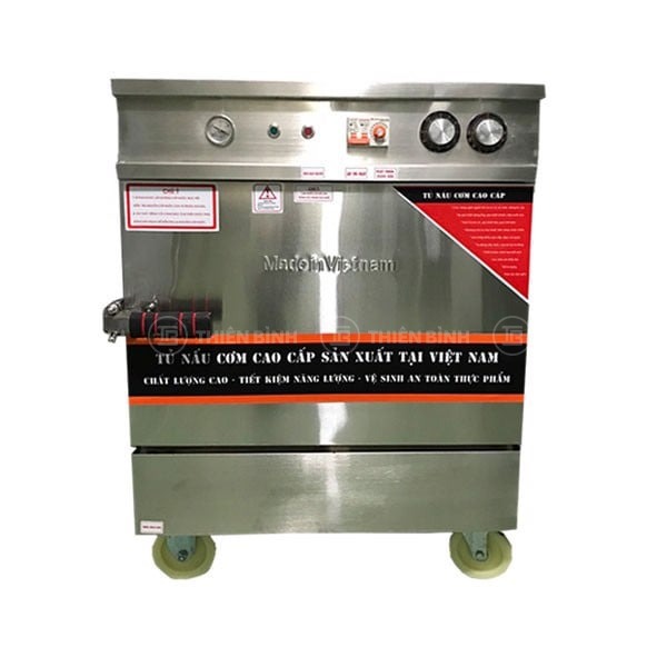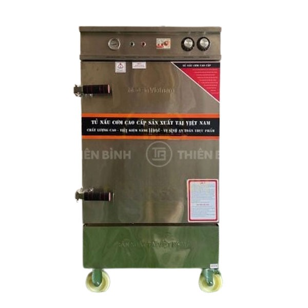 Tủ cơm 4 khay điện TC-D4K được Thiên Bình sản xuất từ chất liệu inox 201, công suất 6kw, nấy được từ 13-17kg gạo mỗi mẻ, nhỏ gọn thuận tiện cho nhiều quán ăn