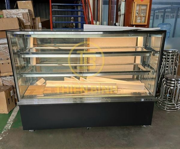 Hình ảnh thực tế của tủ trưng bày bánh 3 tầng 1m8 kính vuông Berjaya RCS18SB13-2FB