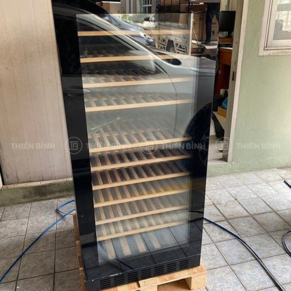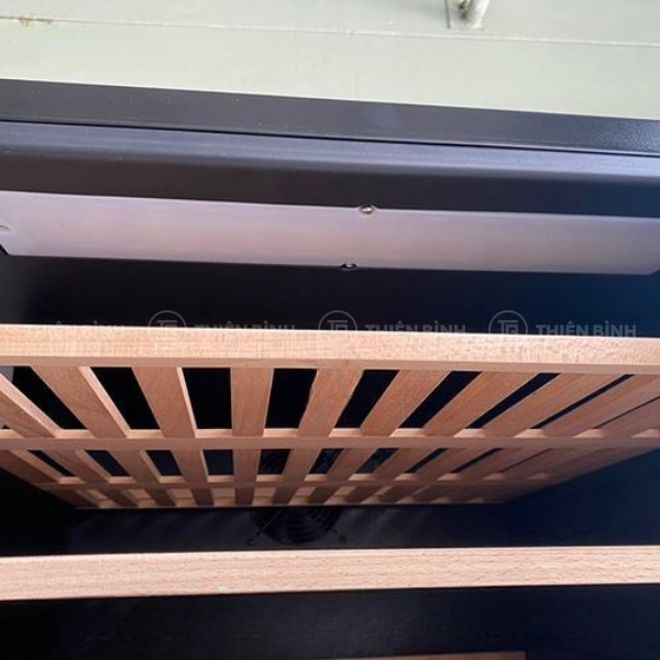 - Cửa kính cấu tạo từ 2 lớp kính cường lực dày, ở giữa có lớp hút chân không giúp tăng khả năng cách nhiệt, đồng thời cho phép người dùng dễ dàng quan sát và lựa chọn chai rượu trưng bày bên trong.