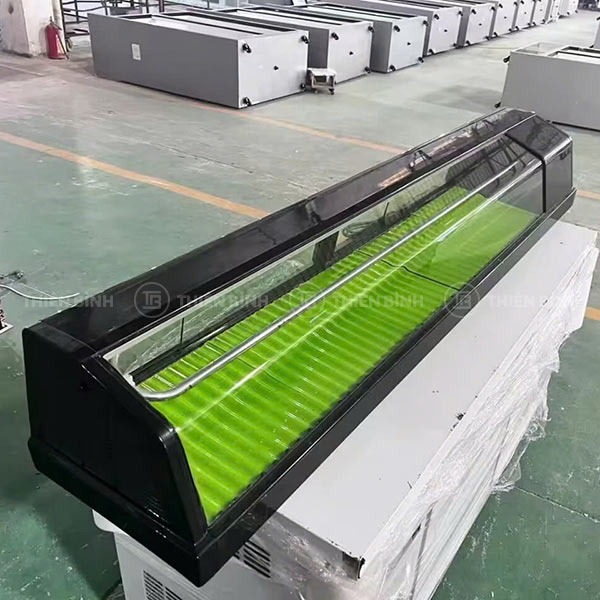 - Tủ có thiết kế kính cong trong suốt, tạo vẻ ngoài hiện đại, sang trọng và cho phép khách hàng dễ dàng quan sát, lựa chọn món ăn.