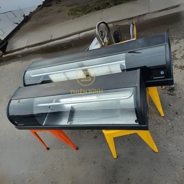 - Mặt kính cong bằng kính cường lực sáng bóng giúp thực khách quan sát sản phẩm rõ ràng, tăng tính hấp dẫn cho món ăn.