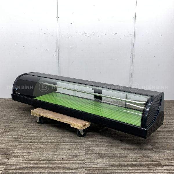 Tủ trưng bày sushi Hoshizaki HNC-150BE-L-B hiện đại, nhập khẩu trực tiếp từ Nhật Bản, chiều dài 1m5, thiết kế kính cong, bề mặt trưng bày dạng sóng, thực phẩm bảo quản không bị khô