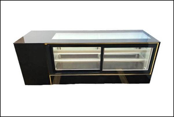 - Thiết kế bố trí máy nén ở bên trái, kính cường lực bao quanh và hệ thống hai cửa lùa phía sau hỗ trợ thao tác lấy, sắp xếp thực phẩm thuận tiện từ cả hai phía, đồng thời phù hợp để trưng bày đa dạng sushi, bánh ngọt hay đồ ăn nhẹ.